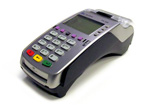 The most common type of payment device is a countertop style credit card terminal. These devices need electrical power and access to either a standard phone line or an ethernet network port / router connected to the Internet.